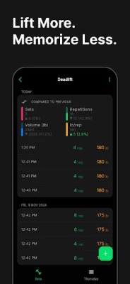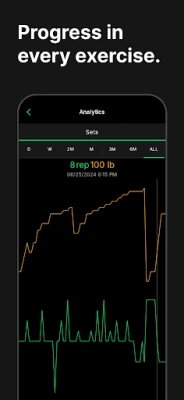 Setgraph se prilagođava vašim potrebama, bez obzira jeste li početnik ili iskusni vježbač s utvrđenom rutinom. Odlučite li bilježiti svaku seriju ili se fokusirati samo na osobne rekorde, Setgraph pruža alate za to. Birajte između različitih formula za izračun vašeg maksimalnog ponavljanja (1RM) i dobivajte napredne uvide u svoj trening. Usporedite svoje trenutne rezultate s prethodnima u stvarnom vremenu, prateći poboljšanja u ponavljanjima, volumenu i težini, osiguravajući progresivno preopterećenje koje vodi do vidljivih rezultata.